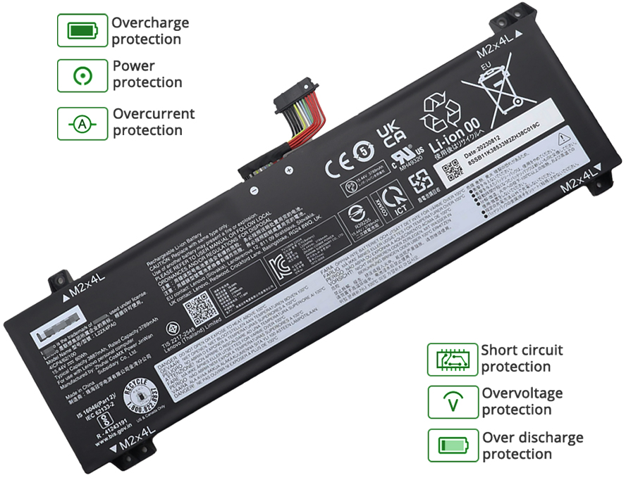 Our 4 cells 60Wh Lenovo 5B11K38530 battery is made in accordance with original battery specifications and is 100 percent compatible with your original battery. Lenovo 5B11K38530 replacement was certified according to international standards. You can buy with confidence!