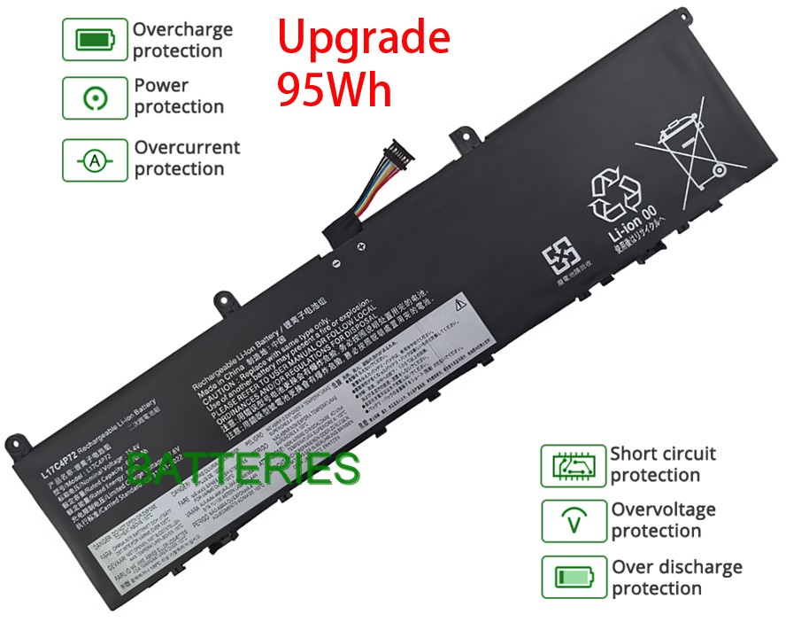 Our 4 cells 95Wh,6170mAh LENOVO SB10T83143 battery is made in accordance with original battery specifications and is 100 percent compatible with your original battery. LENOVO SB10T83143 replacement was certified according to international standards. You can buy with confidence!