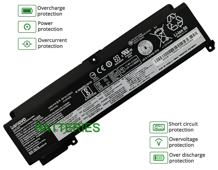 Features of Our Lenovo ThinkPad T470s Type 20JS replacement battery: