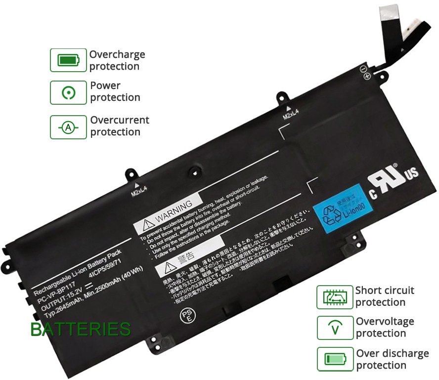 - It is 100% compatible with your laptop and meets the standard system NEC PC-VP-BP117 battery specifications.