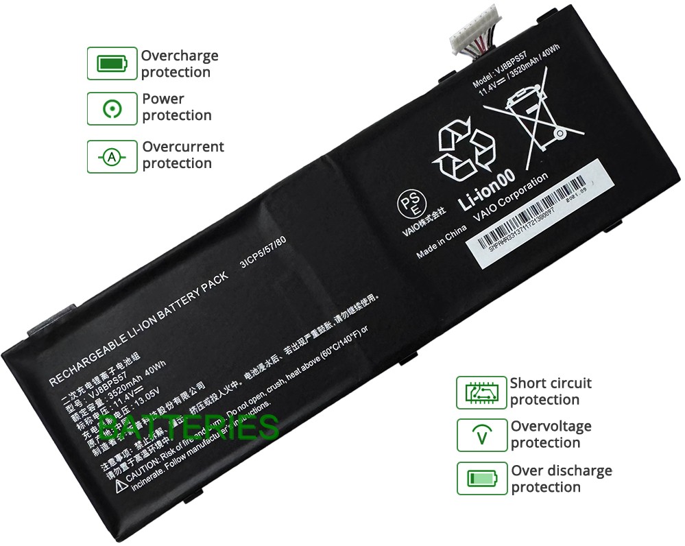 - VAIO VJS15490911W Battery replacement is 100% brand new from the manufacturer and works as well as the original battery for your laptop.