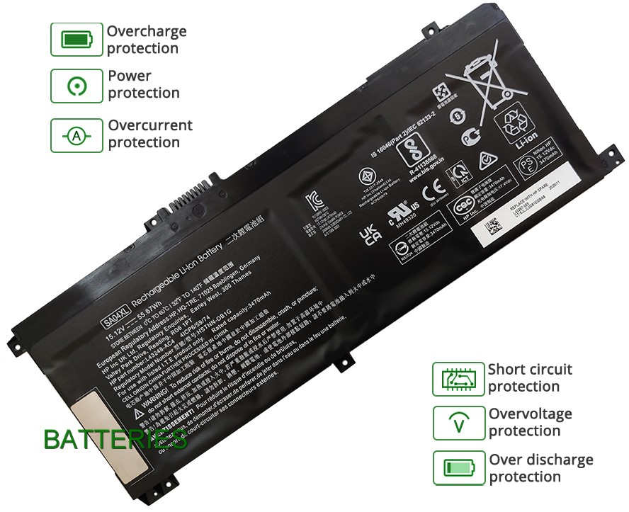 Our 4 cells 55.67Wh, 3470mAh HP Envy X360 15-DR0000 battery is made in accordance with original battery specifications and is 100 percent compatible with your original battery. HP Envy X360 15-DR0000 replacement was certified according to international standards. You can buy with confidence!